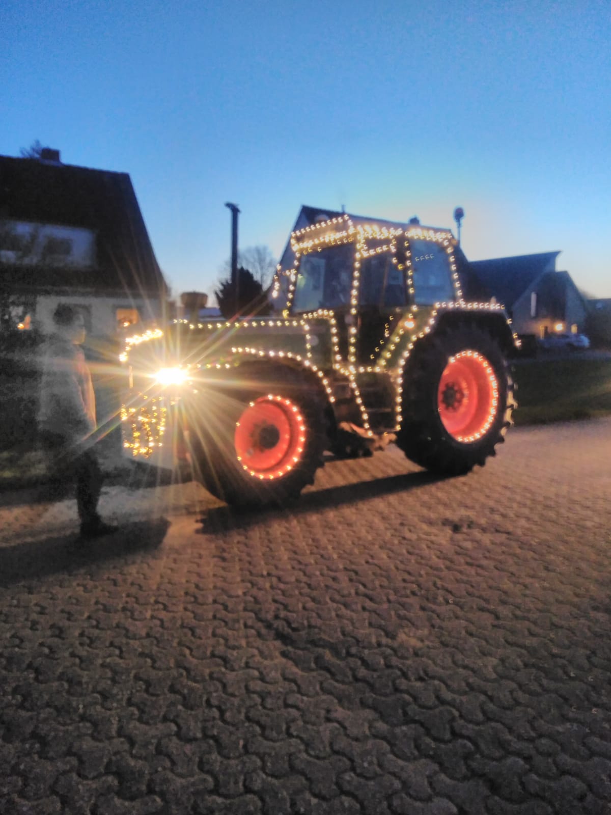 Viele bunt geschmückte und beleuchtet Trecker machen derzeit in der Samtgemeinde Hage vor Schulen und Kindergärten halt und lassen nicht nur die Kinderaugen strahlen. Die Aktion läuft vom LSV unter dem Motto: Ein Funken Hoffnung.